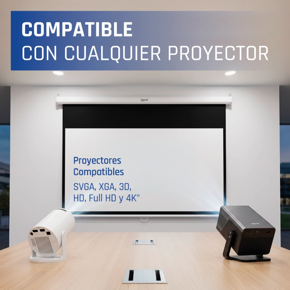 - Ideal para cualquier tipo de proyector, SVGA, XGA, 3D, HD, Full HD y 4K